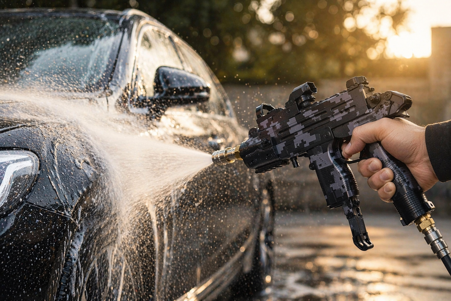 This pressure washer gun features a unique, eye-catching design inspired by a tactical style. Its bold, “Uzi-like” look makes it feel more premium than standard cleaning tools. While completely safe and made for cleaning, the distinctive design adds a fun, modern, and powerful aesthetic you won’t find in typical attachments.